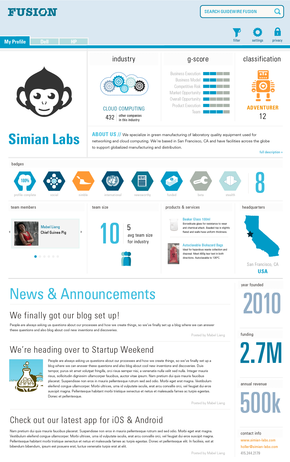 Dashboard Profile for Startups