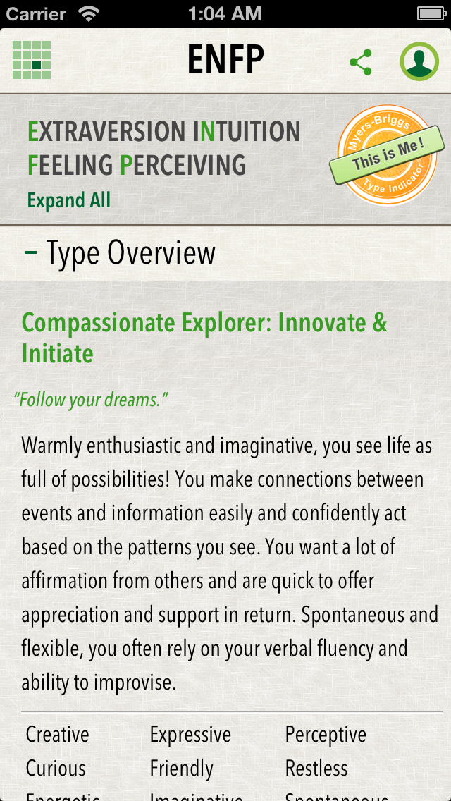 MBTI App for iPhone 5